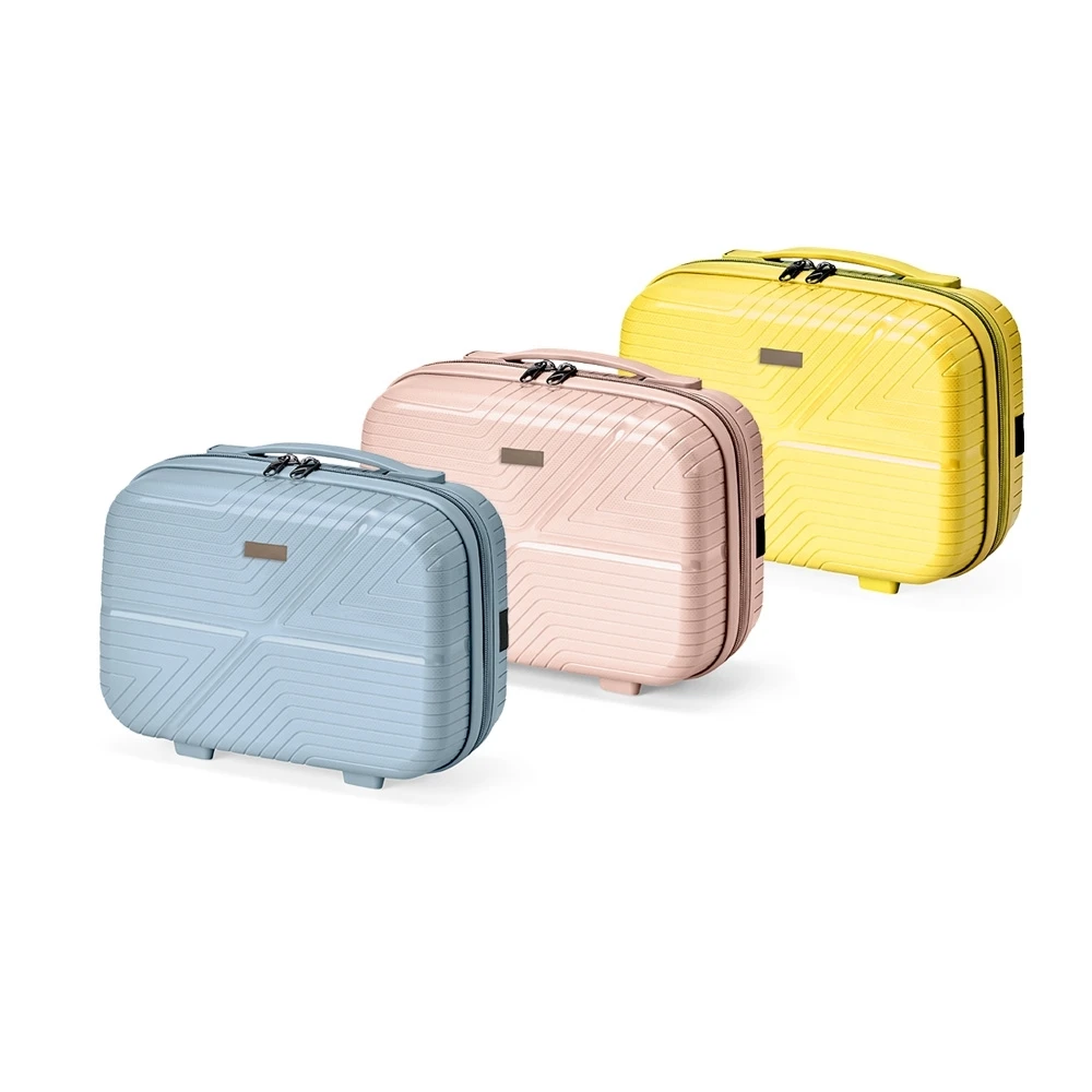 A frasqueira de viagem personalizada, feita em plástico rígido e com capacidade aproximada de 10 litros, protege frascos e acessórios durante deslocamentos. O interior possui três compartimentos, incluindo um bolso em tela com zíper para itens pequenos, e a base com quatro apoios reforçados evita o contato direto com superfícies. A alça de mão facilita o transporte, enquanto o elástico traseiro permite acoplá-la a malas maiores, tornando o percurso mais prático. A placa metálica aceita personalização discreta.