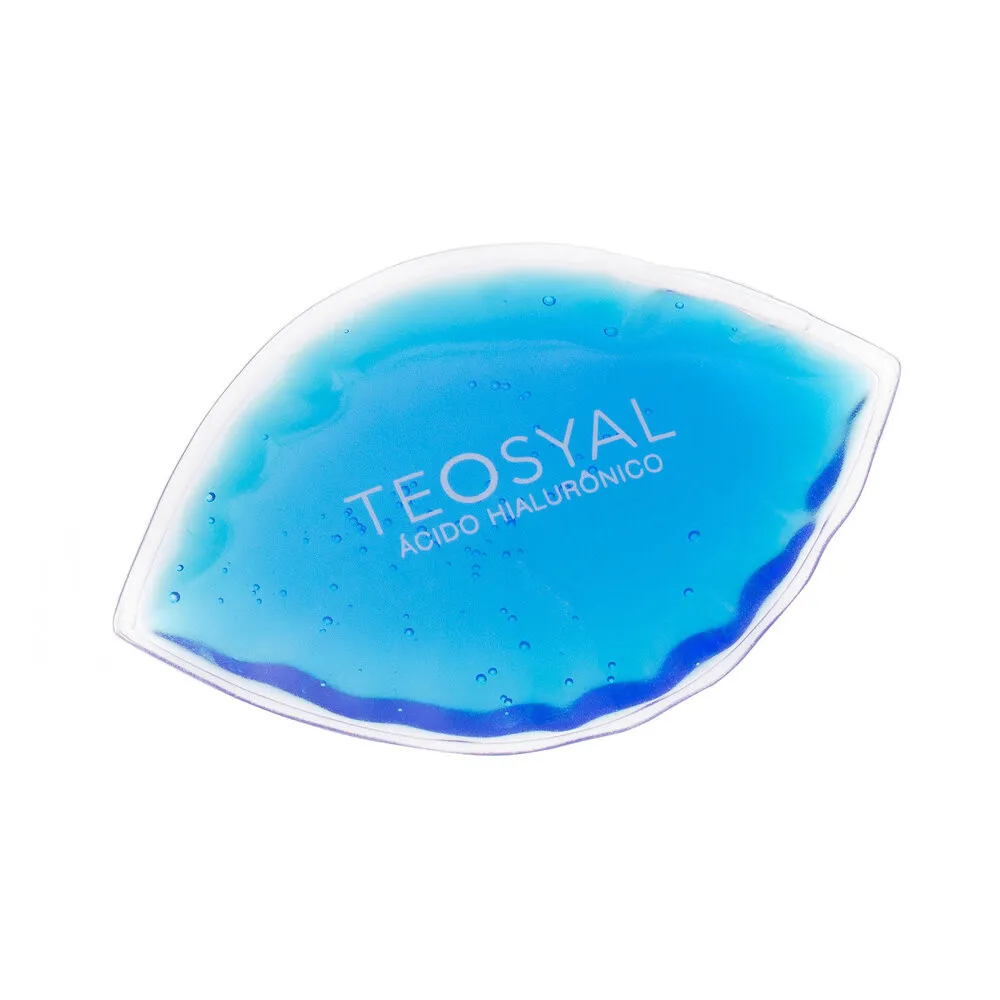 A bolsa térmica em formato de olho é feita em PVC pneumático cristal 0,20 mm, com solda ultrassônica que reforça a durabilidade; pode ser usada quente ou fria para aliviar edema e desconforto na região periocular.