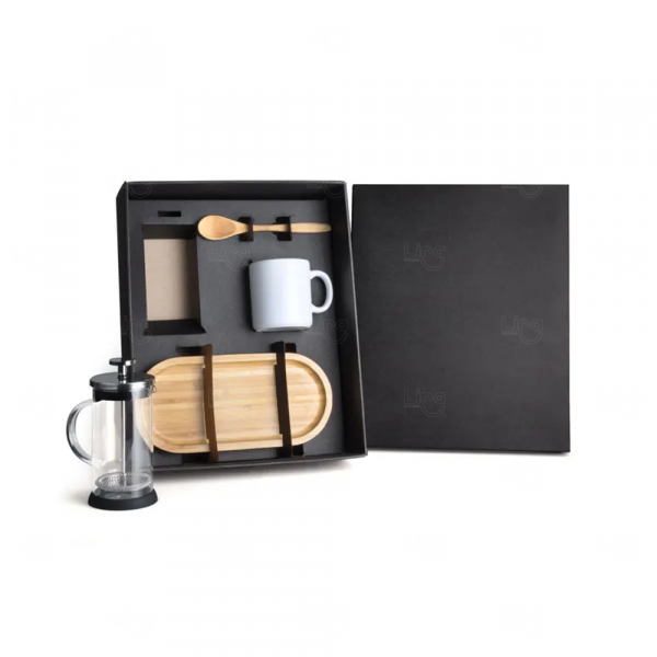 Personalize seu kit café com a Lira Brindes! Solicite um orçamento online e rápido e ofereça um brinde acolhedor e sofisticado para seus clientes e colaboradores!