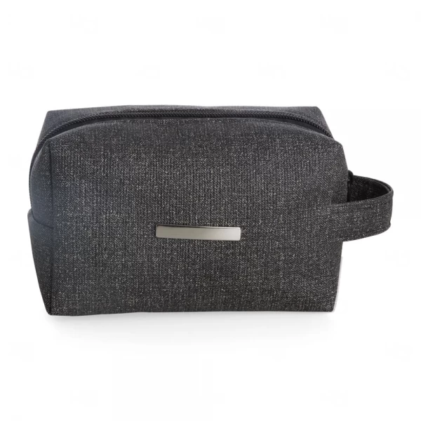 Bolsinha personalizada necessaire Jeans com alça e acabamento interno forrado. Gravação na plaquinha de metal.