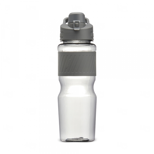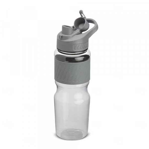 Squeeze plástico com capacidade de 730 ml, ideal para uso em atividades físicas, ambientes corporativos e ações promocionais. Conta com luva emborrachada que garante pegada firme e confortável, mesmo em movimento. A tampa é rosqueável, com bocal para fácil consumo e alça fixa que facilita o transporte. O bocal possui ainda tampa de proteção com trava de segurança, evitando vazamentos e mantendo a higiene. Pode ser personalizado com a logo da empresa, sendo uma excelente opção de brinde funcional e moderno.