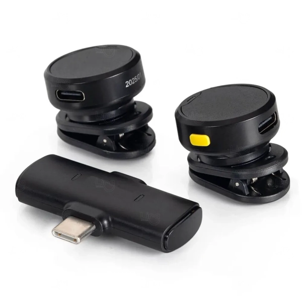 Desenvolvido para captação de som sensível, o sistema conta com redução de ruído, garantindo clareza em gravações. A bateria proporciona de 3 a 4 horas de uso contínuo, com recarga em aproximadamente 1 hora via USB-C. Com alcance de transmissão entre 15 e 25 metros, é um brinde corporativo ideal para treinamentos, webinars e produção de conteúdo institucional, com áreas adequadas para personalização com logo.