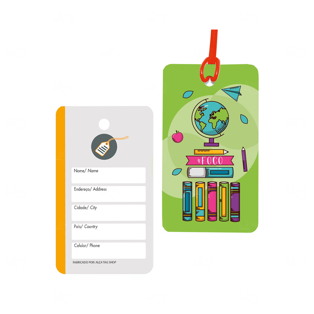Tag personalizada em PVC com alça de silicone, ideal para identificar malas, mochilas ou brindes corporativos com estilo. Produzida em material resistente, com impressão colorida 100% personalizável, a tag está disponível em diferentes espessuras de PVC (consulte nosso atendimento), oferecendo alta durabilidade contra rasgos e puxões. Possui frente brilhante para destacar sua marca e verso fosco, permitindo escrita com caneta comum (como Bic). Caso a impressão seja feita em vinil, a escrita deve ser feita com caneta permanente. Acompanha alça de silicone flexível e resistente, garantindo praticidade no uso e excelente fixação.